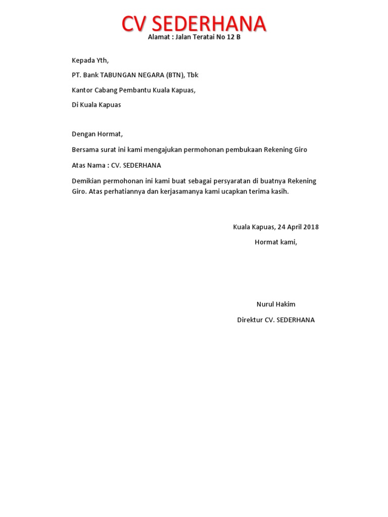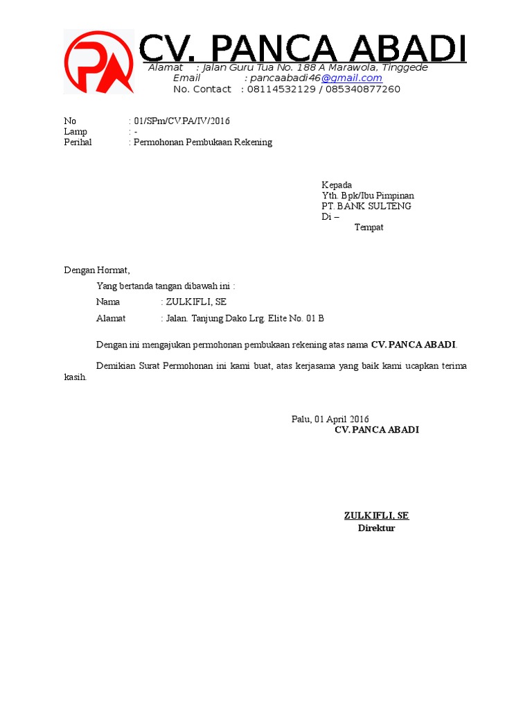 Surat Permohonan Buka Rekening Baru Perusahaan