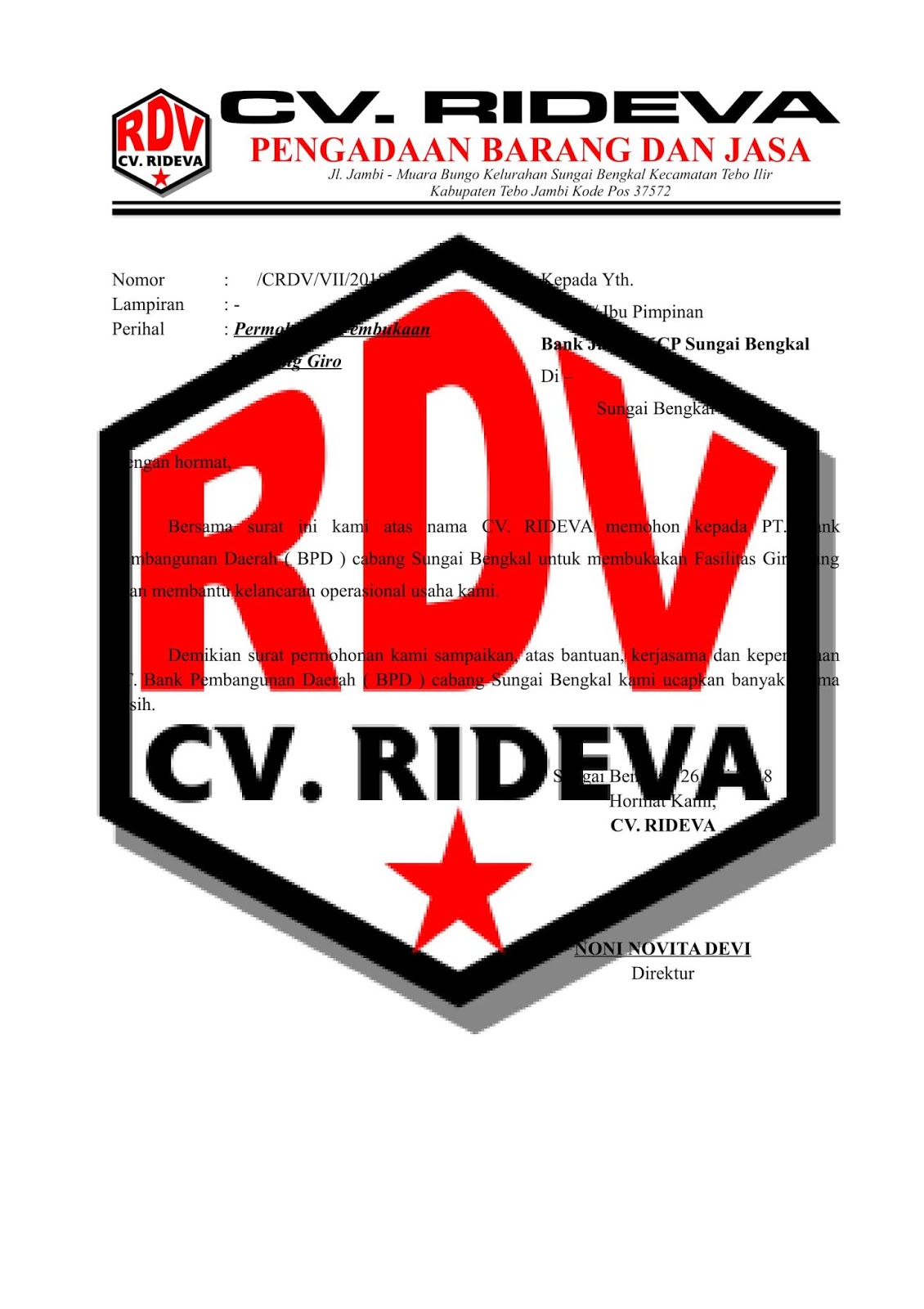 Surat Permohonan Buka Rekening Baru Perusahaan