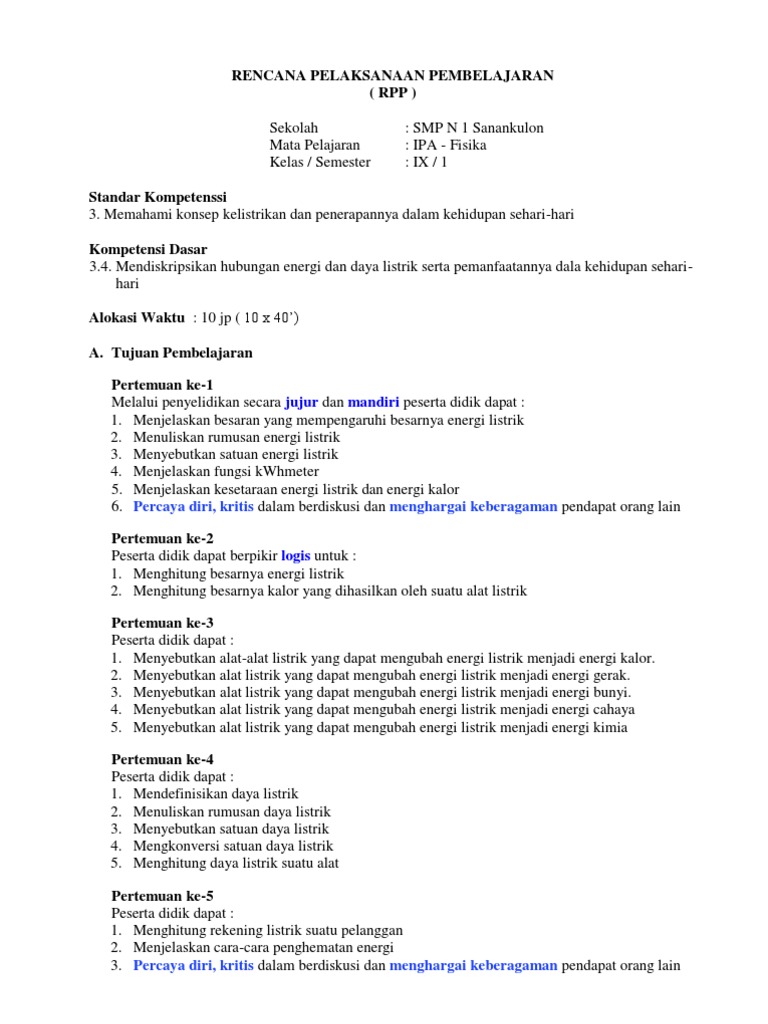 Rpp Ipa Berkarakter Kd 3 4 Kls 9