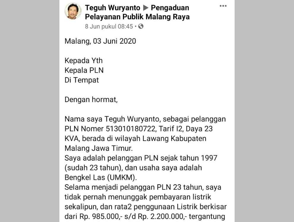 Viral Tagihan Listrik Warga Malang Bengkak Hingga Rp 20 Juta