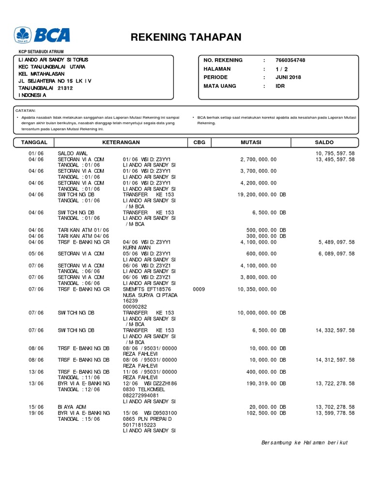 Contoh Rekening Koran Bca 3 Bulan Terakhir Untuk Syarat Kpr Atau