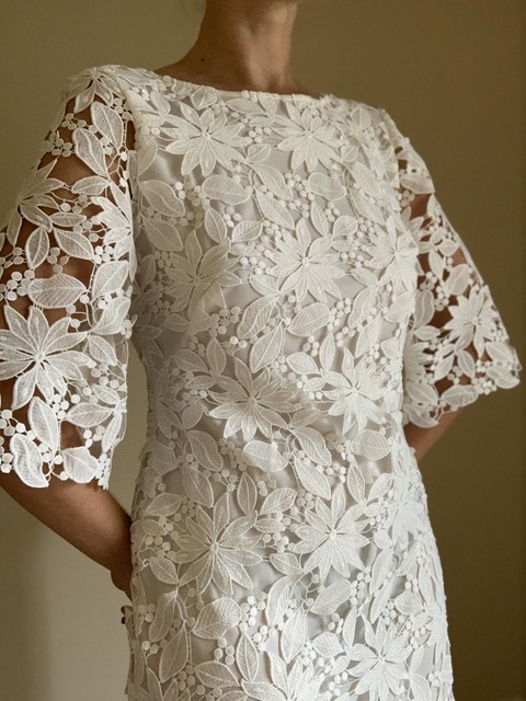 Lauren Ralph Lauren Floral Lace Dress Cream Porcelain 12