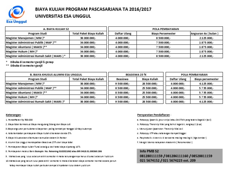 Biaya Pascasarjana Universitas Esa Unggul Ta 2016 Pdf