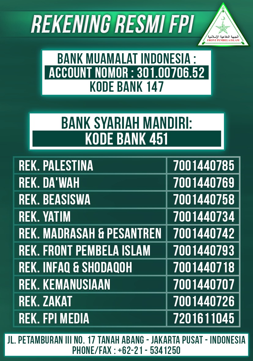 Inilah Rekening Resmi Front Pembela Islam Fpi