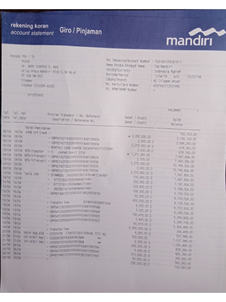 Rekening Koran Mandiri 10 Jul 2018 12 15 36 1 Pdf