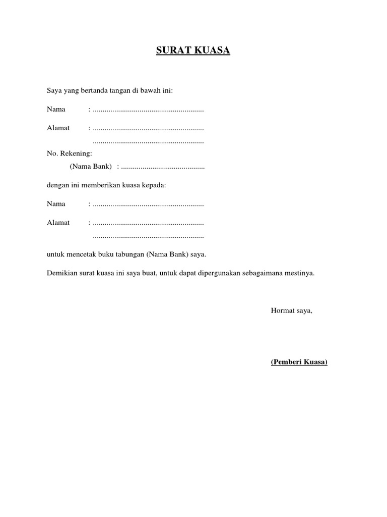Contoh Surat Kuasa Untuk Rekening Koran Backup Gambar
