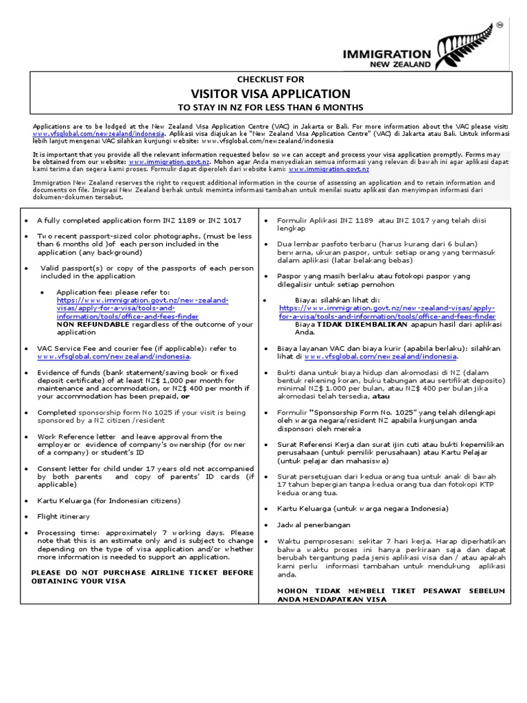 Visitor Visa Application Checklist For To Stay In Nz For Less