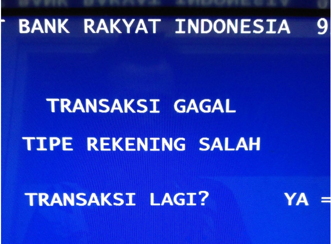 Atm Tidak Bisa Di Tarik Transaksi Gagal Tipe Rekening Salah